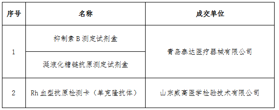 我院对抑制素B测定试剂盒等项目进行院内采购,经评委评审确定成交供应商,现将成交供应商公示如下: