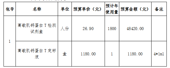 根据医院工作需要,经批准,现就我院急需高敏肌钙蛋白T检测试剂盒及定标液项目进行院内采购,择优选择供应商。请符合以下要求的供应商前来参与。