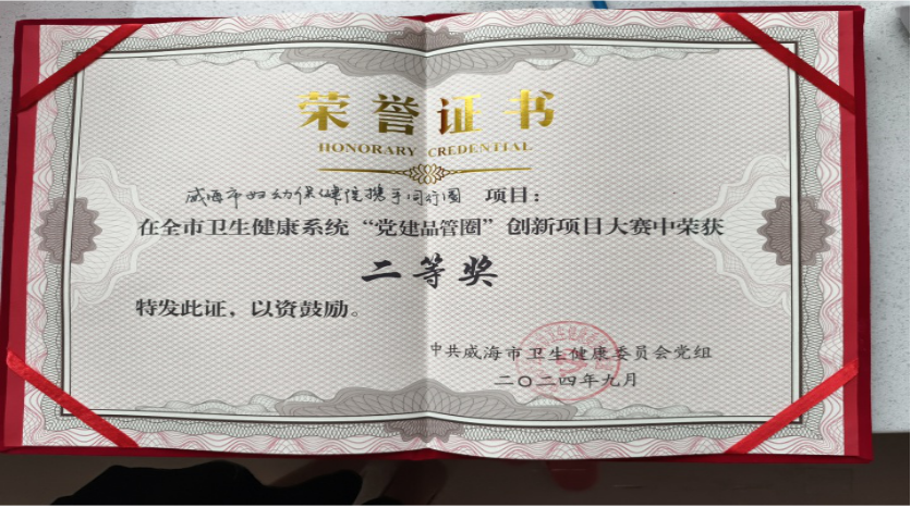 2024年9月26日,全市卫生健康系统第二届“党建品管圈”创新项目大赛决赛在市卫生健康委顺利举行。威海市妇幼保健院妇产科一支部“携手同行圈”项目荣获二等奖。
