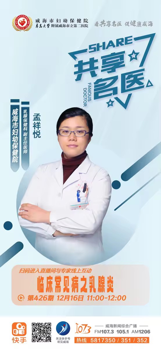 直播预告 | 12月16日乳腺保健科副主任医师孟祥悦讲座「临床常见病之乳腺炎」