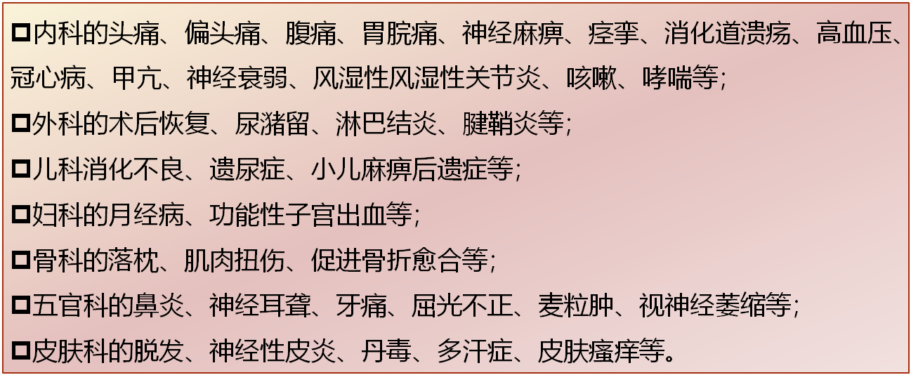 具体操作部位有循经叩刺、穴位叩刺、局部叩刺。可用于各种系统疾病: