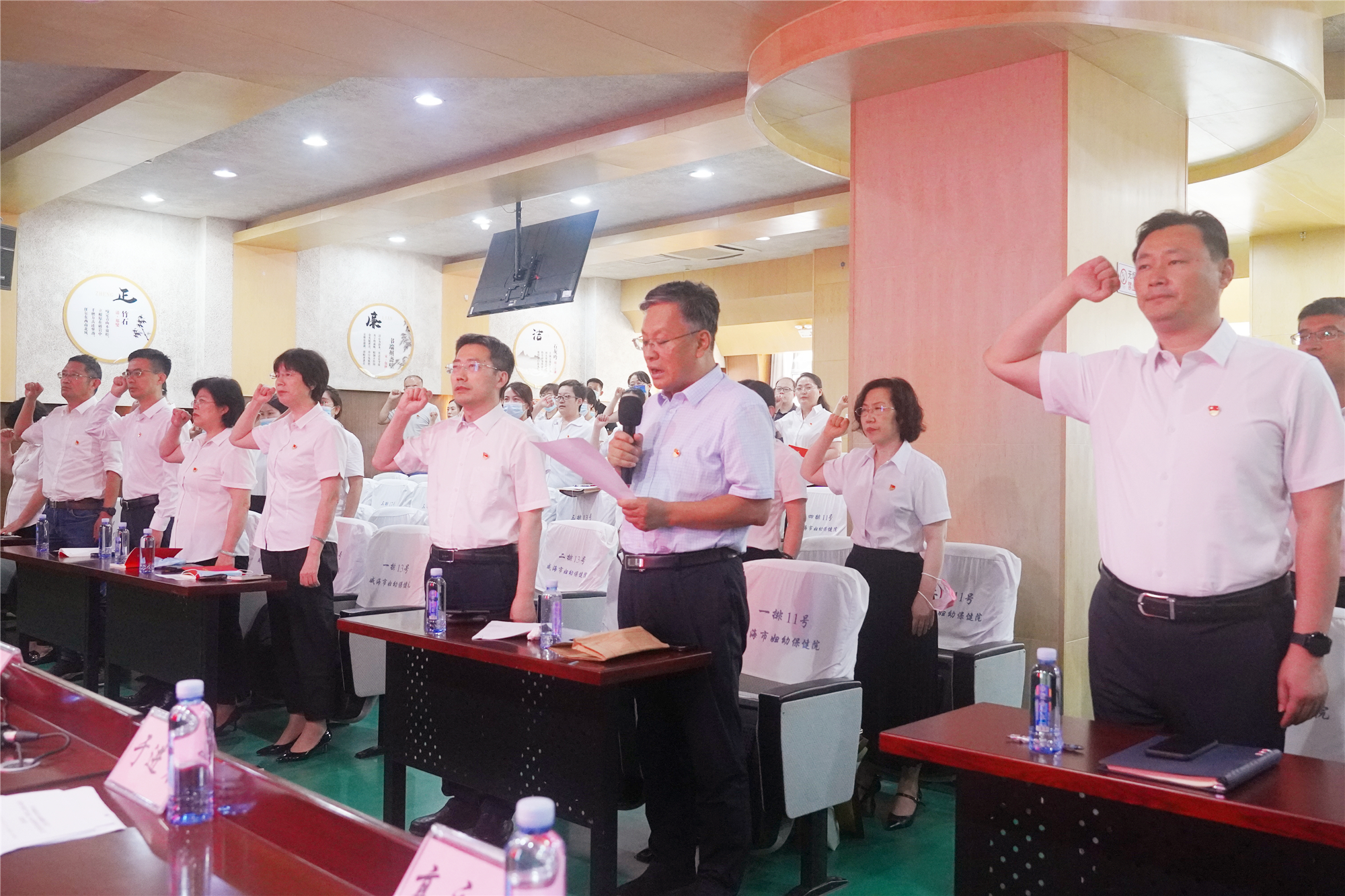 6月30日下午,中共威海市妇幼保健院委员会庆祝中国共产党成立102周年暨先进表扬大会在行政办公楼二楼会议室隆重举行。医院党委班子成员、党员代表、党龄达到50年的老党员以及党外主持工作的科主任、护士长参加了本次会议。