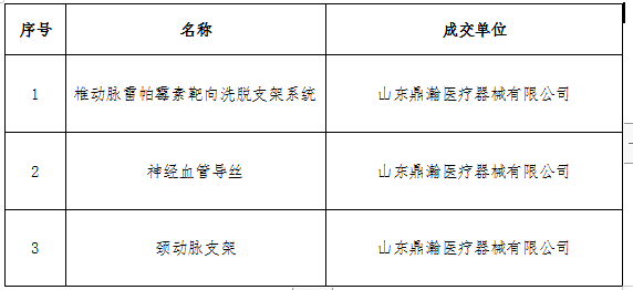 我院对椎动脉雷帕霉素靶向洗脱支架系统等医用耗材项目进行院内采购,经评委评审确定成交供应商,现将成交供应商公示如下: