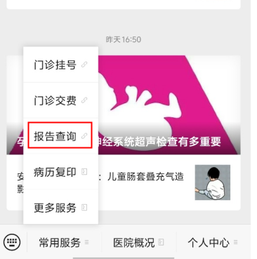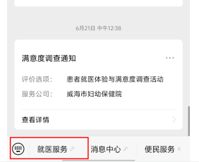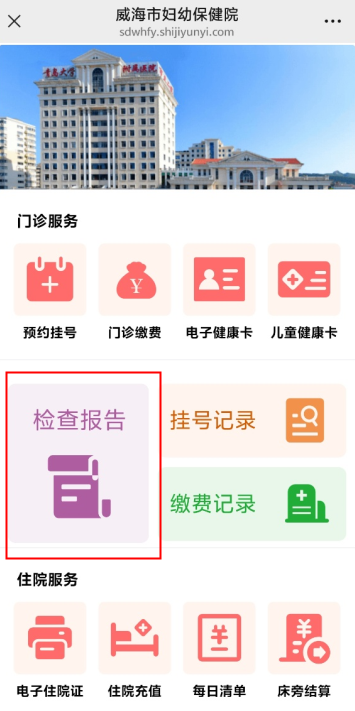 2.患者关注“威海市妇幼保健院”服务号或“威海妇幼保健院订阅号”公众号,查看检验报告。