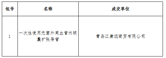 我院对一次性使用无菌外周血管内球囊扩张导管项目进行院内采购,经评委评审确定成交供应商,现将成交供应商公示如下:
